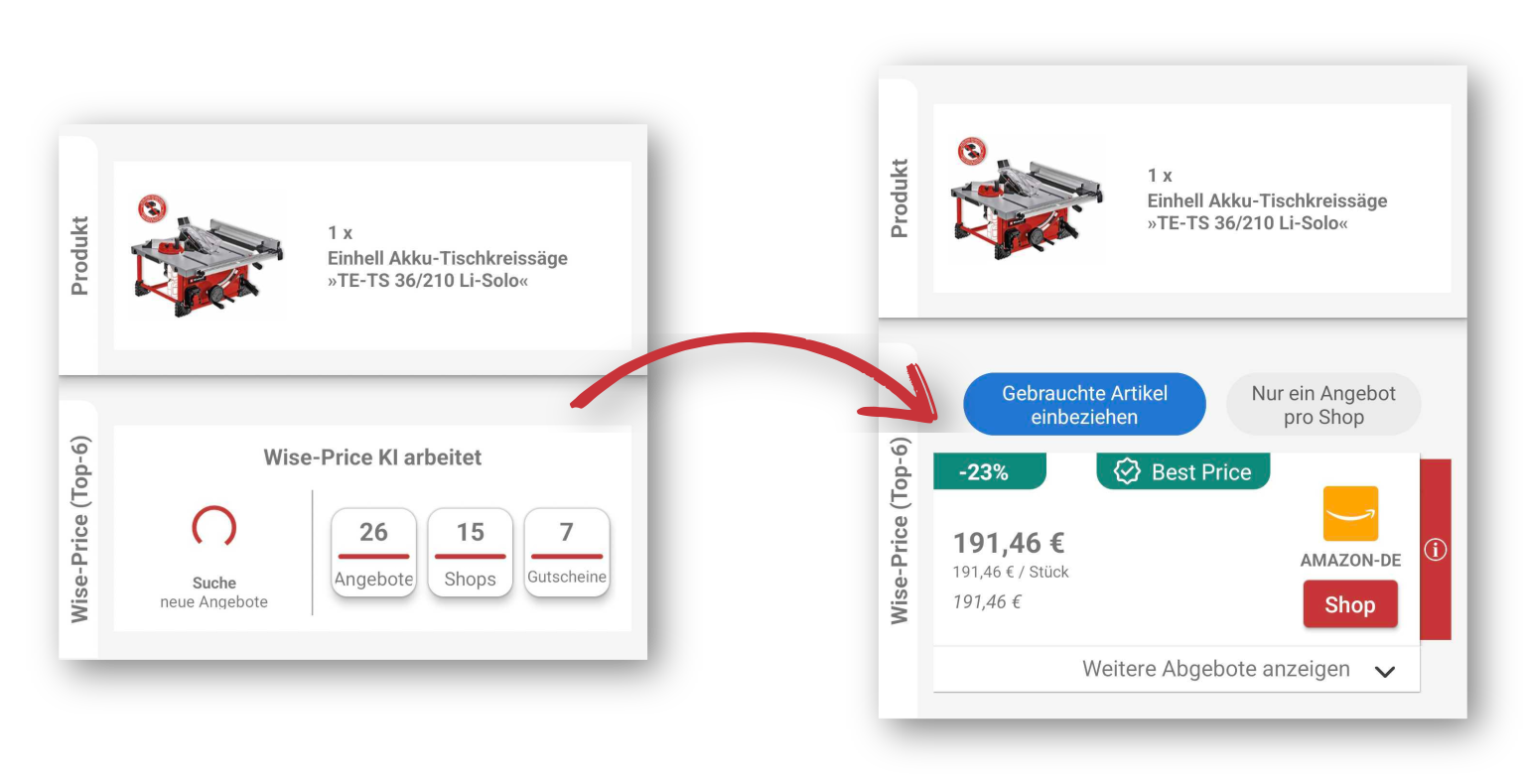 Sind wir uns sehr sicher, dass wir den allerbesten Preis ermitteln konnten, dann zeigen wir dir dies mit unserem „Best-Price“-Banner an. Auf diese Weise sind unsere Preise in 98% der Fälle besser oder gleich wie bei Idealo.